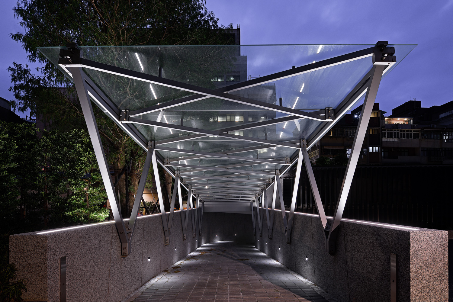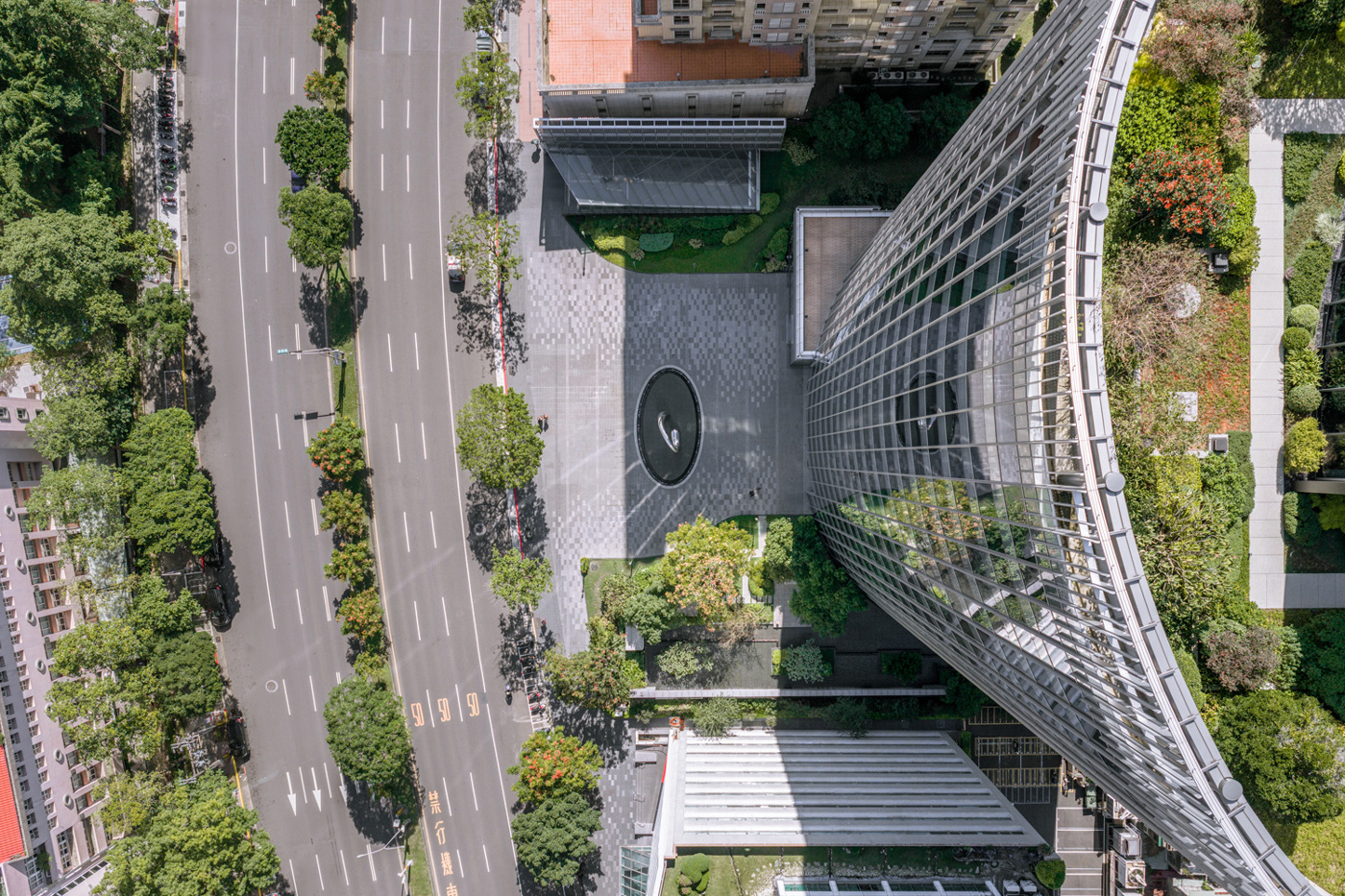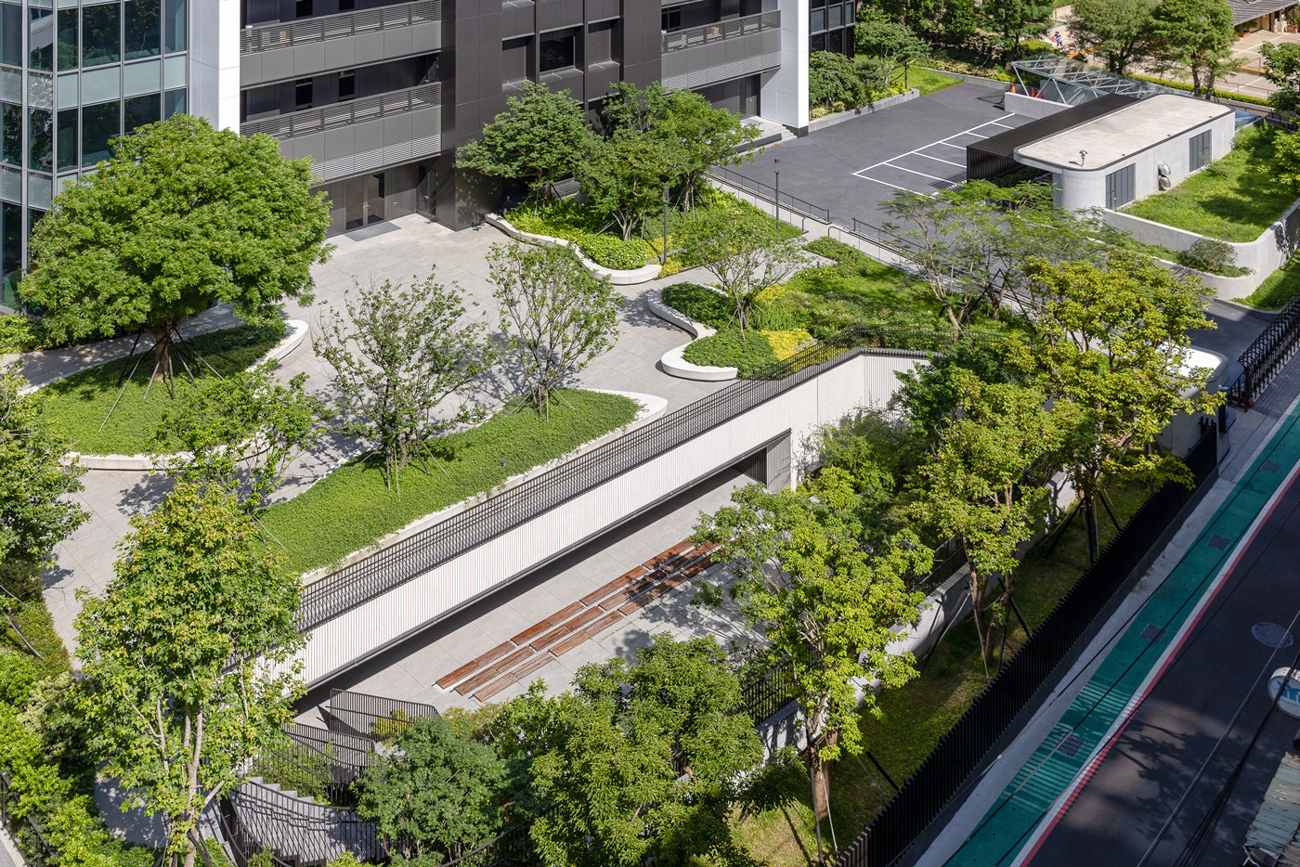 設計以綠意滲入城市為構想,基地以29%的建蔽率配置建築,留設大量的綠化開放空間,