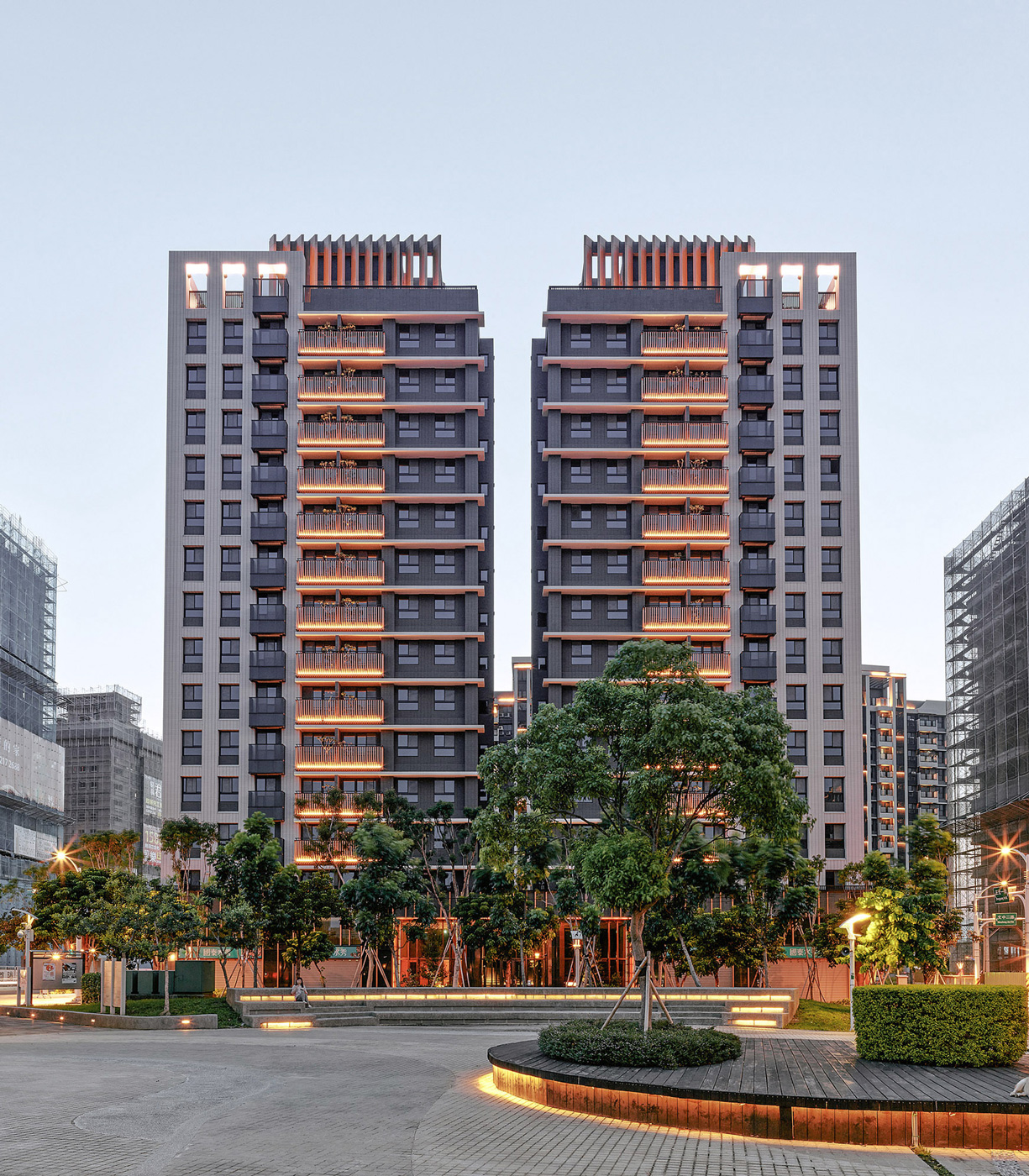 鄰里相知,自然相伴。 國泰建設於桃園中路二段打造的住宅大樓,擁抱水秀公園第一道林蔭,綠意自此綿延。「林蔭之城」作為靈感,將綠的形態與枝葉韻律向外延展,向上堆疊。錯落量體呼應丘陵起伏,彷彿林木在都市間層層生長。基地開放空間與行道樹緊密串連,通透的社區門廳與對街公園相映成景。一樓沿街配置一般零售,互補與公園相連的日常機能。在這裡,閱讀一段流動的風景,散步、購物、相遇自然發生。 共享而友善的生活,就在國泰水秀從容發生。