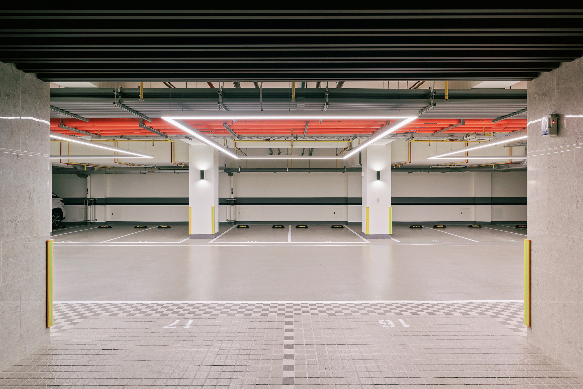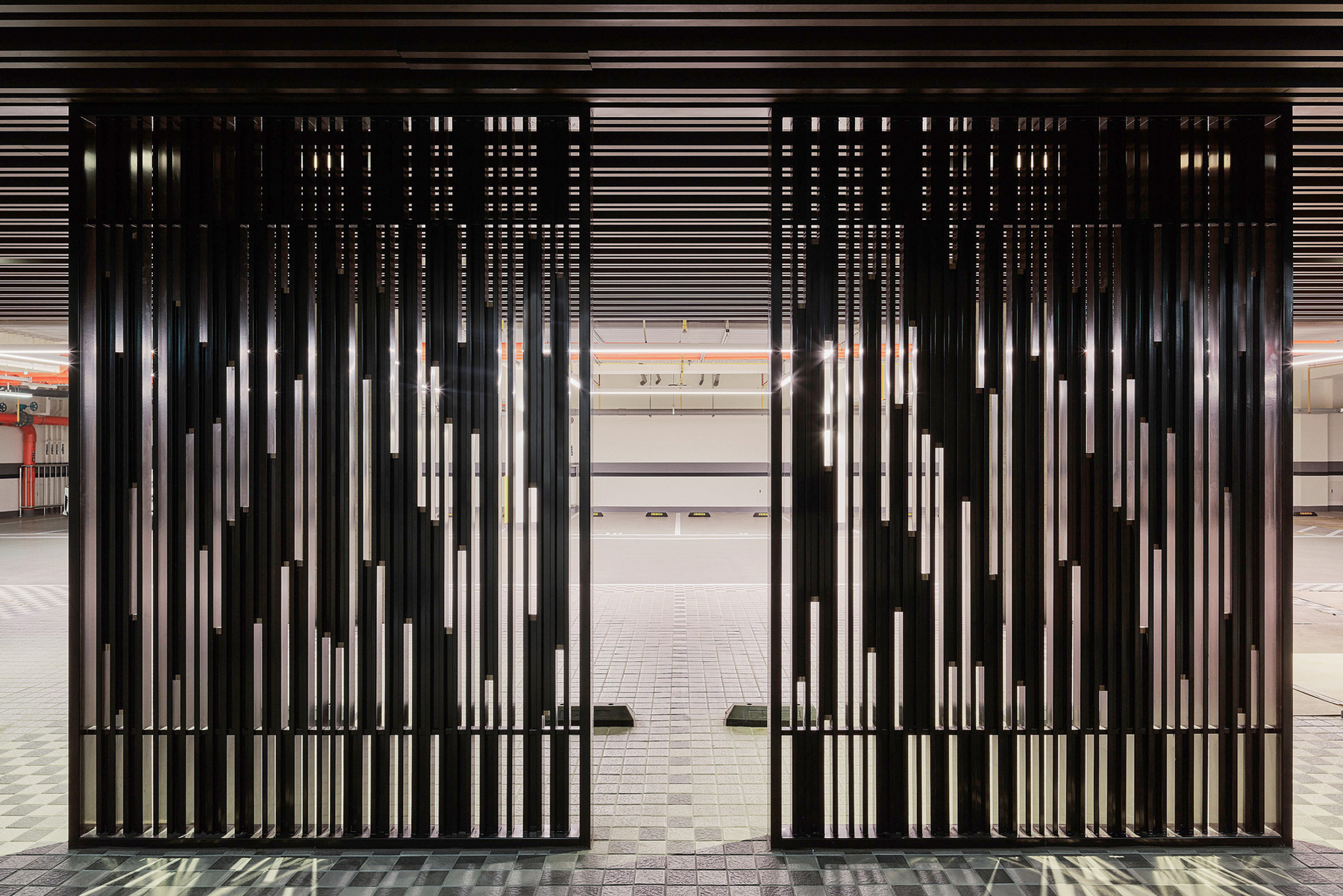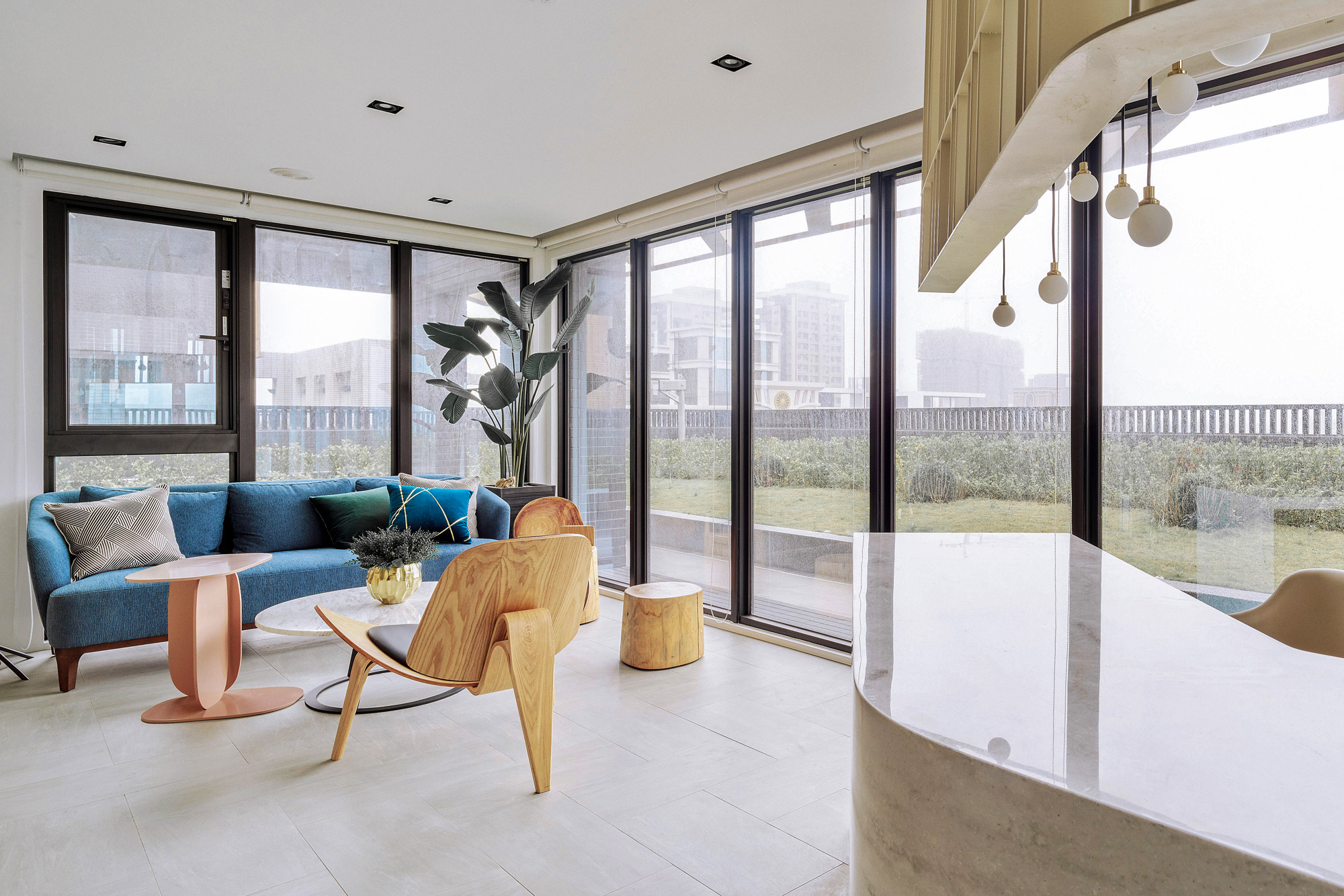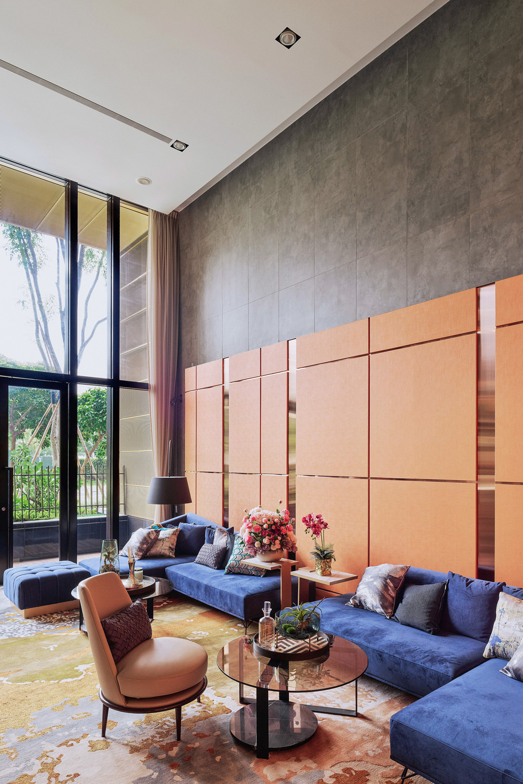 水秀室內設計,延續「林蔭之城」的建築概念——光線從樹影交錯之間穿透而來,延展視覺,展現空間層次。包括透空格柵的配置,引導自然光進入室內,形成明暗有序的空間節奏。藉由視線與動線的連續,綠意讓空間內外一體,彼此相映光輝,形塑社區共享與開放的生活型態。